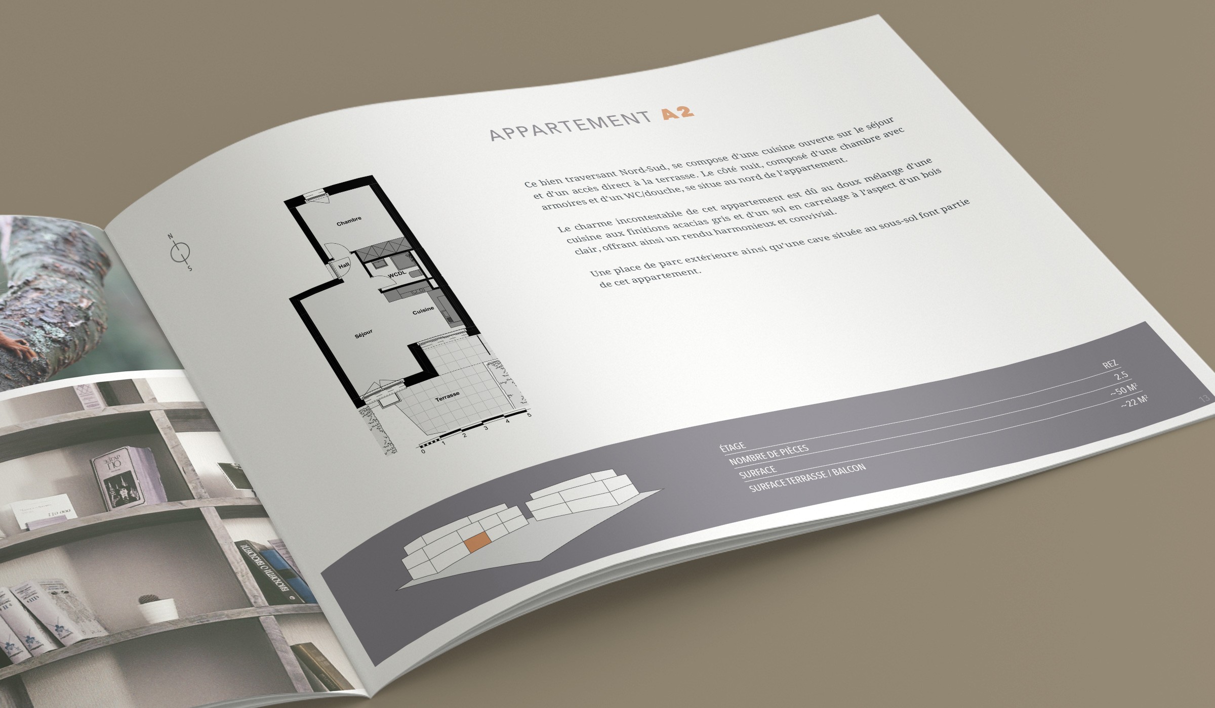 Après de longs brainstorms et beaucoup de cafés, nous avons proposé un nom pour la résidence qui corresponde au plus près à la vision du client, dans le même temps nous avons suivi les avancements du projet afin de réaliser le plus fidèlement tous les visuels, rendus 3D et divers éléments qui nous ont servi de base pour le développement du site web ainsi que toute la documentation nécessaire à la communication dont une magnifique brochure destinée aux futurs locataires.